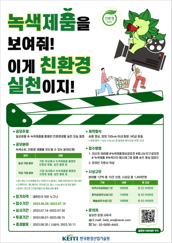 녹색제품(환경표지, 친환경 인증) 숏폼 공모전 진행
