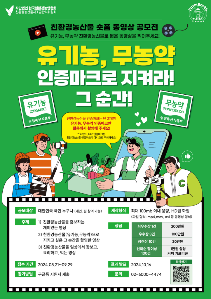 친환경농산물(유기농, 무농약) 숏폼 공모전 진행